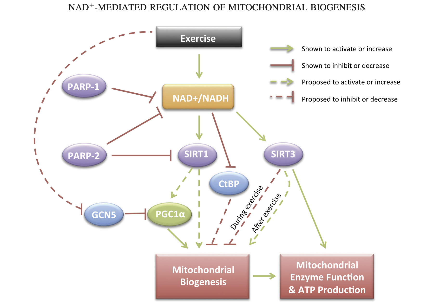 Oddly, this paper is frequently cited to support the claim that NAD+ is increased during exercise. That is not my reading of this. Instead those claims appear to be applicable to long-term adaptation. Interestingly, the long-term adaptation that may be most important is mitochondrial biogenesis.